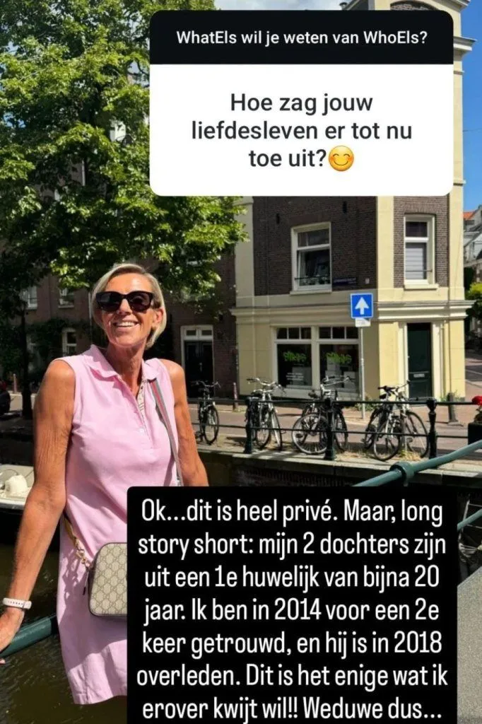 ''Dat is het enige wat ik erover kwijt wil!! Weduwe dus...#'', zo schrijft Els in haar Instagram story bij een mooie foto van zichzelf.