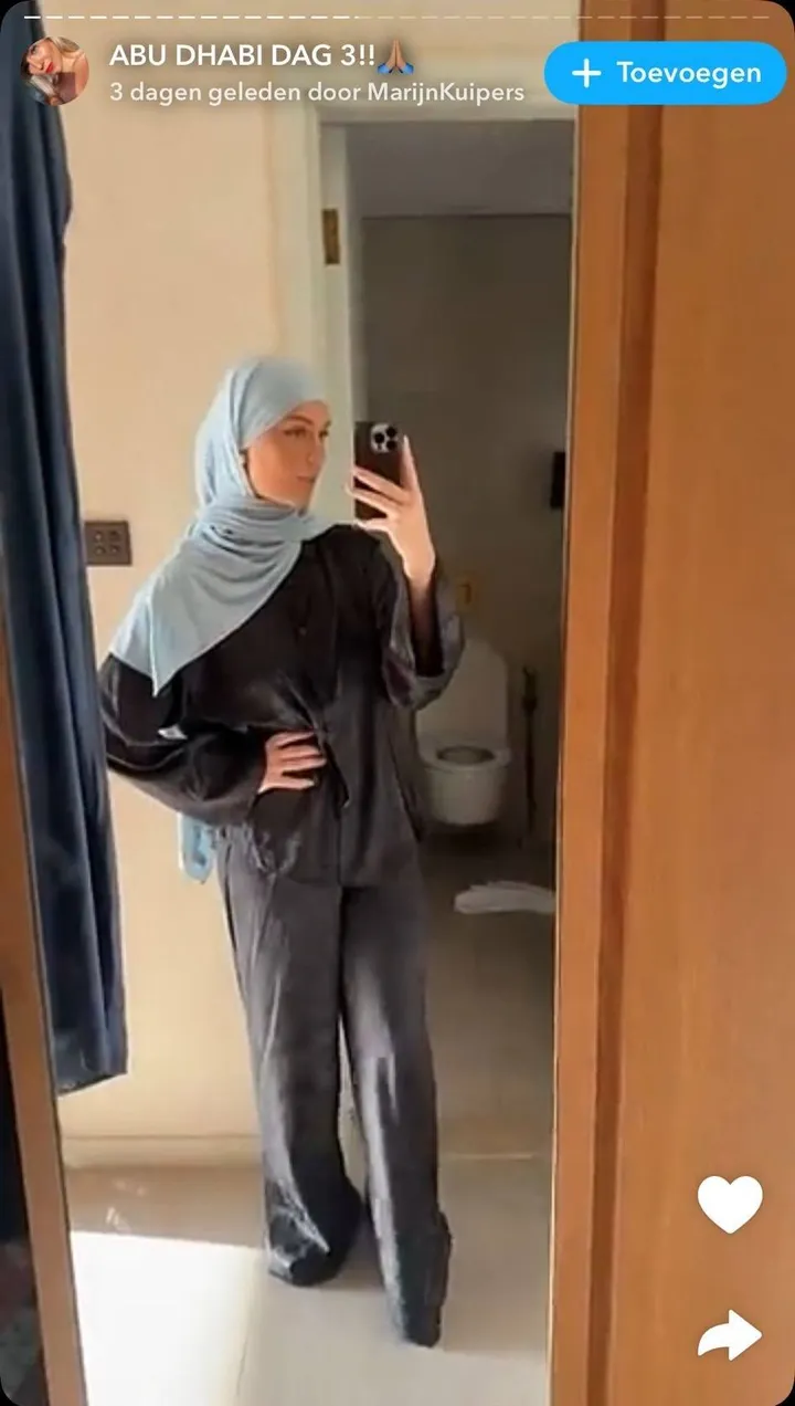 Zijn vriendin werd onlangs met een hoofddoek gespot. Op vakantie in Abu Dhabi besloot Marijn zich te hullen in lokale kledij.