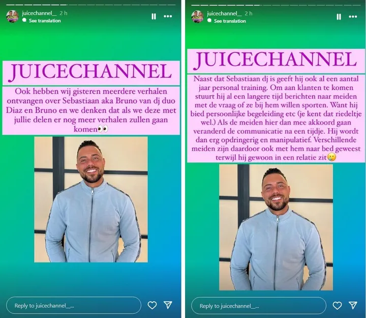 Onderstaand screenshots, afkomstig van de Instagrampagina van Juicechannel: