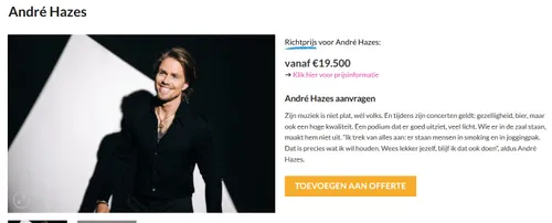 Dat neemt niet weg dat de zanger natuurlijk gewoon te boeken is voor feestjes en partijen. Maar dat is niet heel goedkoop ofzo. Sterker nog: Hazes is op het moment van schrijven de duurste Nederlandstalige artiest. De prijs die je moet betalen voor een halfuurtje André is werkelijk waar absurd. Vandaar dat ook niemand hem boekt, zo denken wij.
