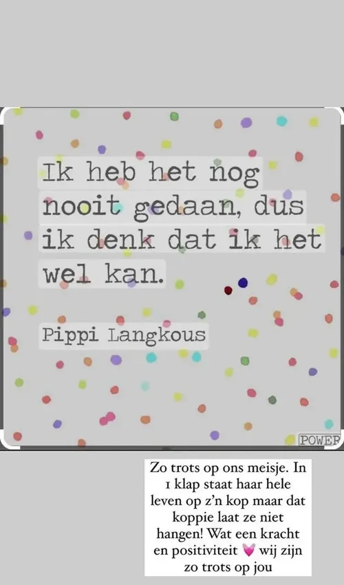 Op Instagram heeft Wendy een ode aan Lizzy geplaatst. Ze schrijft ontzettend trots op haar dochter te zijn: ''In 1 klap staat haar hele leven op z'n kop maar dat koppie laat ze niet hangen! Wat een kracht en positiviteit 💞 we zijn zo trots op jou''