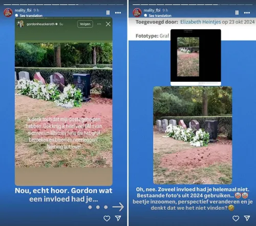 Pijnlijk voor Gordon, die het vandaag nog erger maakt. Via Instagram deelt hij een foto waarop te zien is dat het graf er beter bij ligt. Er zijn zelfs bloemen neergelegd.