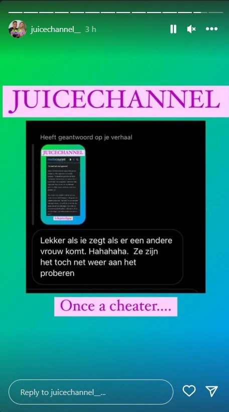 Ze zijn het toch weer aan het proberen? Het kanaal Juicechannel reageert vervolgens met de woorden: 'Once a cheater...''