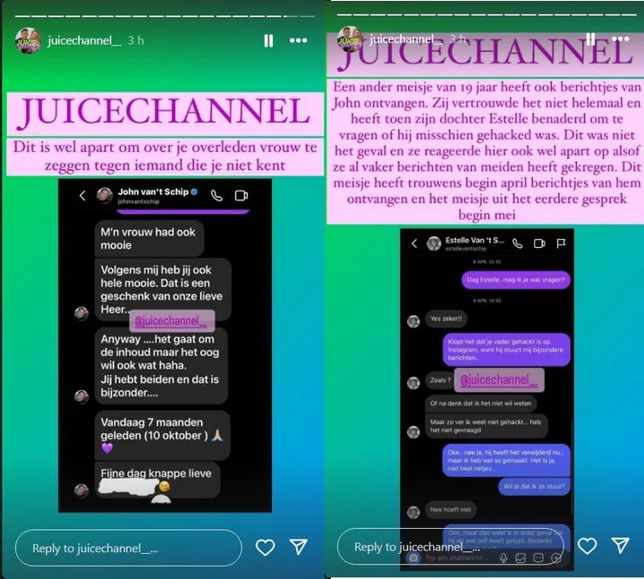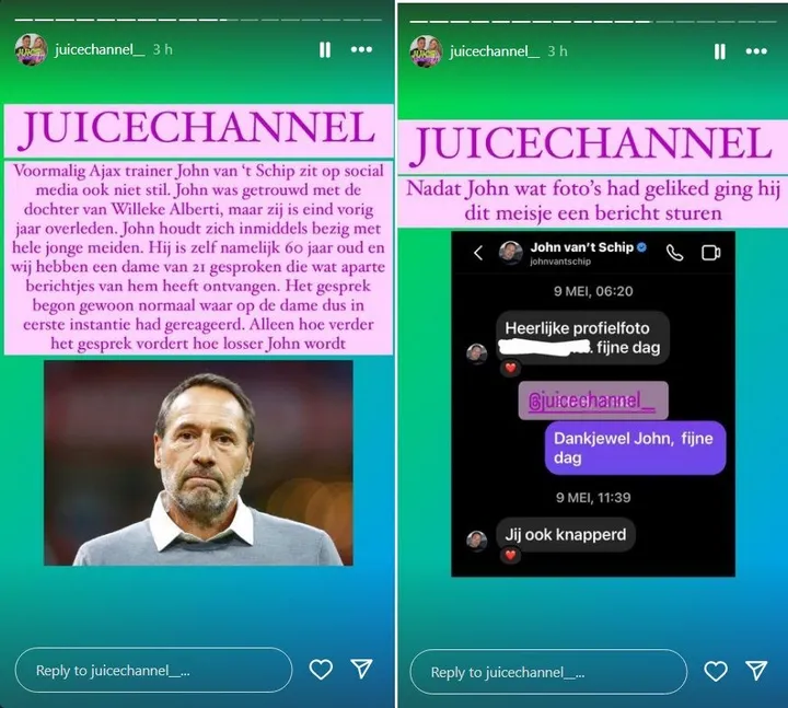 Het kanaal schrijft op Instagram: ''John houdt zich inmiddels bezig met hele jonge meiden. Hij is zelf namelijk 60 jaar oud en wij hebben een dame van 21 gesproken die wat aparte berichtjes heeft ontvangen. Het gesprek begon gewoon normaal.''