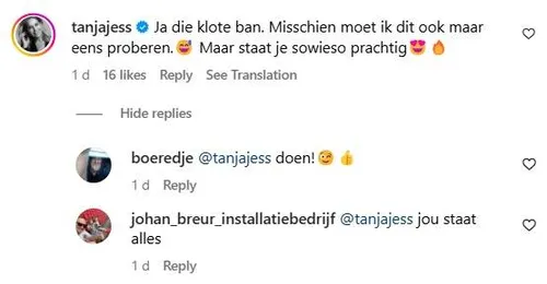 Katja lijkt sommige volgers op een goed idee te hebben gebracht. Tanja Jess bijvoorbeeld, die spreekt van 'die klote ban'. ''Misschien moet ik dit ook maar eens doen.''