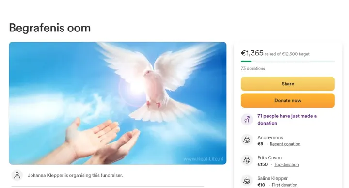 ''Zonder verzekering kunnen we hem geen waardig afscheid geven; mijn nicht Johanna en wij als familie willen vragen om een klein beetje steun.'' Louisa benadrukt wel dat volgers zich niet verplicht moeten voelen om hun bijdrage te leveren.