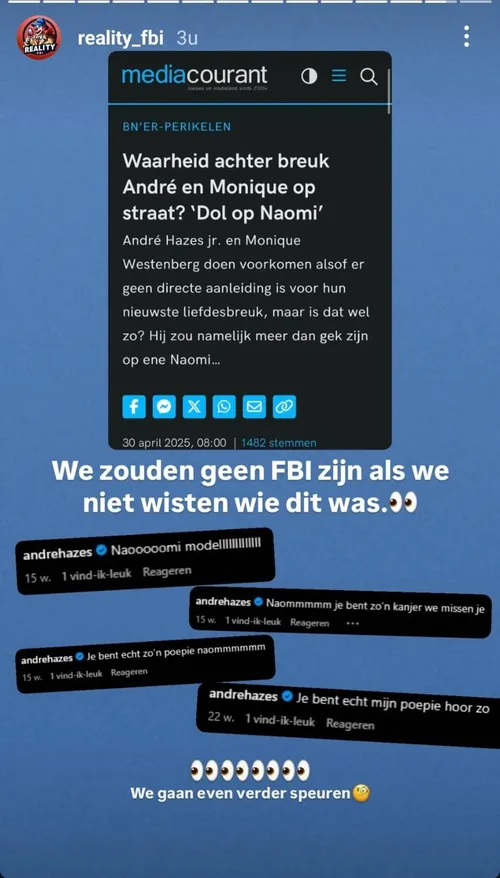 ''Dan is er ook nog Naomi...Een onbekende blondine die een rol zou kunnen spelen. Edwin Bredius heeft daar een verhaal over gemaakt en van André hebben we nog niets vernomen.''