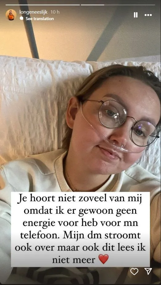 Ze ontvangt talloze berichten in haar DM (Direct Messages). ''Maar ook dit lees ik niet meer'', aldus Eva die heel erg ziek is.