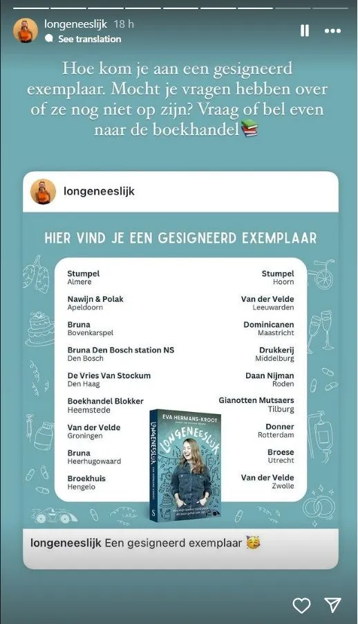 Normaal doen we dit nooit, maar voor Eva maken we graag een uitzondering. Het boek Longeneeslijk is vanaf nu te bestellen via