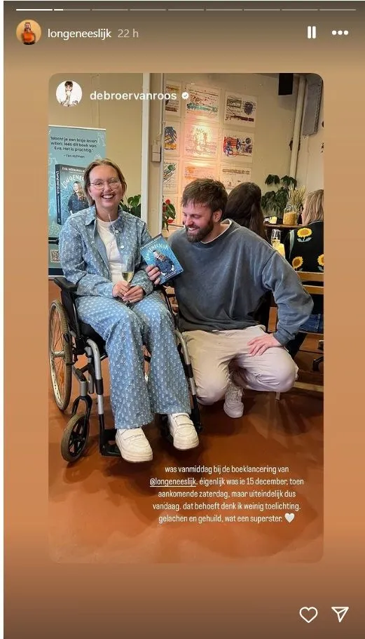 Eva had vlak de feestdagen een mooie lancering gepland van haar boek Longeneeslijk. Omdat haar gezondheid zo hard achteruit is gegaan, is besloten dit moment te vervroegen, zodat ze nog aanwezig kon zijn bij dit zeer bijzondere moment.
