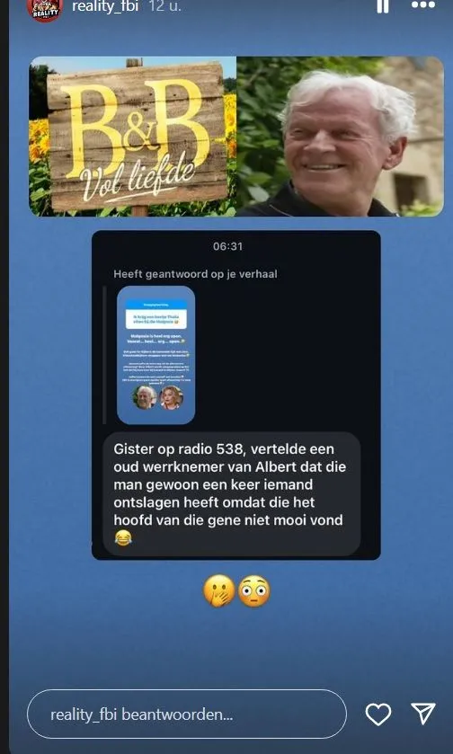 Het Instagramkanaal RealityFBI meldde eerder dat de uitkomst van het liefdesavontuur van Albert in B&B Vol Liefde al bekend zou zijn.