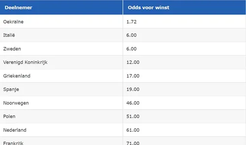 Alle ingrediënten voor een 'overwachte' overwinning dus. S10 had net zo goed thuis kunnen blijven. Hoewel veel BN'er voor de buhne beweren dat S10 een ''goede kans maakt'' om te winnen, laten bookmakers juist een heel ander beeld zien. Kreeg ze twee maanden terug maar liefst 2 procent kans op te winnen: inmiddels is dat nog maar 1 procent. Nouja, slechter dan de inzending van Nederland van vorig jaar lijkt het niet te kunnen, dus alles daarboven is pure winst.