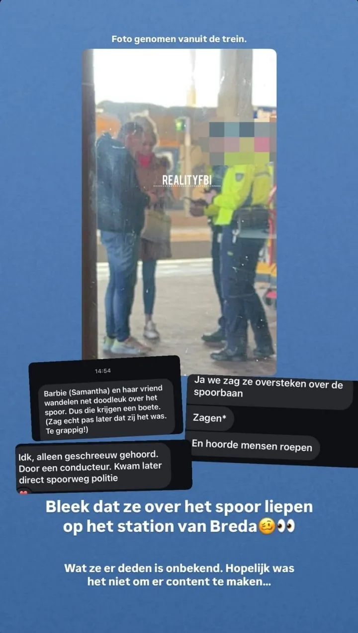 Wat er aan de hand is wordt verduidelijkt door meerdere volgers. Samantha en haar vriend besloten op station Breda doodleuk over het spoor te gaan lopen.