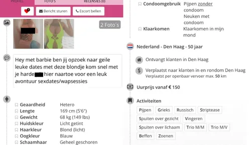 Waar veel zorgen over zijn ontstaan, zijn de diensten die Barbie aanbiedt. Zo kun je bij haar een zogeheten 'wapsessie' krijgen. Dit betekent dat je het bed induikt onder invloed van verboden middelen. Hieronder zie je alle diensten die je bij de Haagse kunt afnemen.