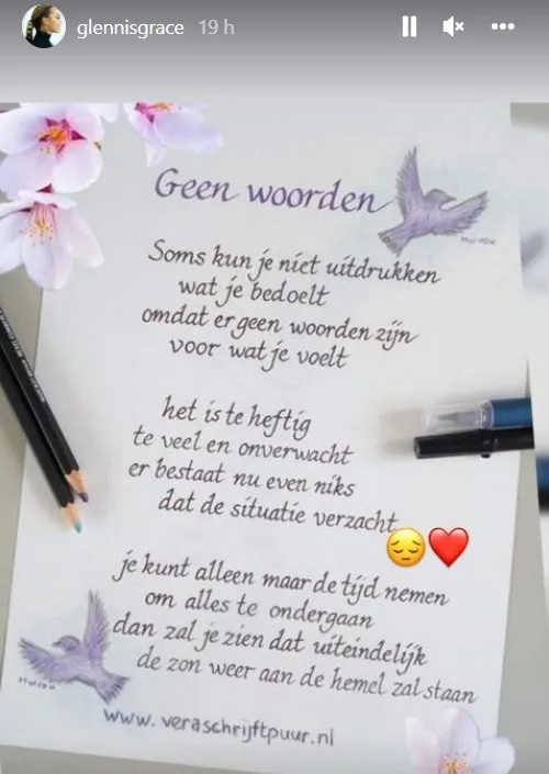 Het gaat niet goed met Glennis Grace. De zangeres werd gisteren pijnlijk geconfronteerd met de verwijdering van haar naam uit de line-up van de Beste Zangers Live. Dat vindt Glennis erg pijnlijk. Zo pijnlijk, dat de zangeres op Instagram een soort van overlijdensbericht heeft geplaatst.