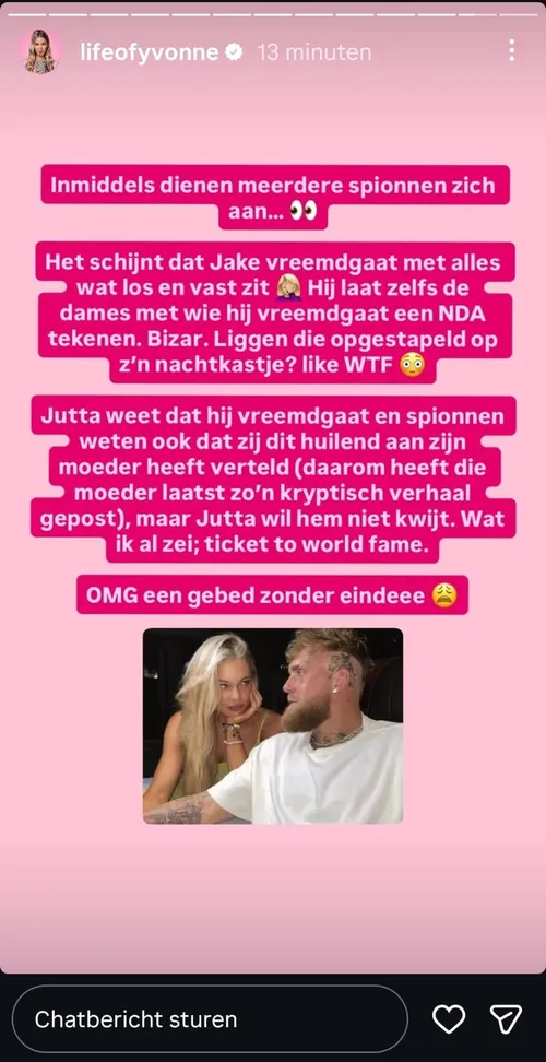 Vanavond bracht Yvonne Coldeweijer opmerkelijk nieuws naar buiten: Jake Paul zou zijn koningin aan de kant hebben gezet. Dat leverde een stortvloed aan reacties op, maar nu deelt Yvonne een vervolg, dat mogelijk nog heftiger is. In een verhaal op