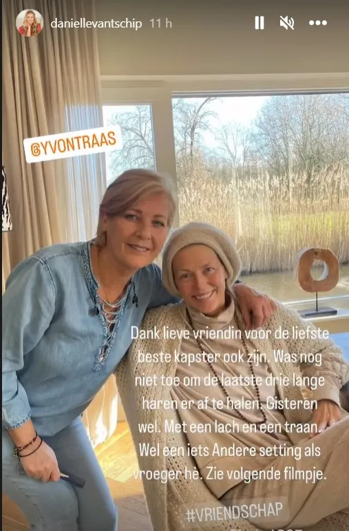 Op Instagram schrijft Daniëlle het volgende: ''Ik was er nog niet aan toe om de laatste drie lange haren eraf te halen. Gisteren wel. Met een lach en een traan. Wel een iets andere setting dan vroeger, he?''