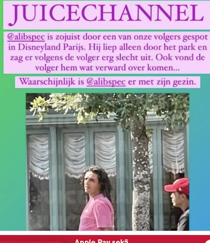 De rapper heeft dus duidelijk voor rust gekozen en wordt nauwelijks nog in het openbaar gespot. Roddelaccount Juice Channel heeft echter nieuws over het reilen en zeilen van Ali. Een 'spion' van het kanaal zag Ali gisteren namelijk lopen in Disneyland Parijs. En dat was een nogal vreemde gewaarwording.