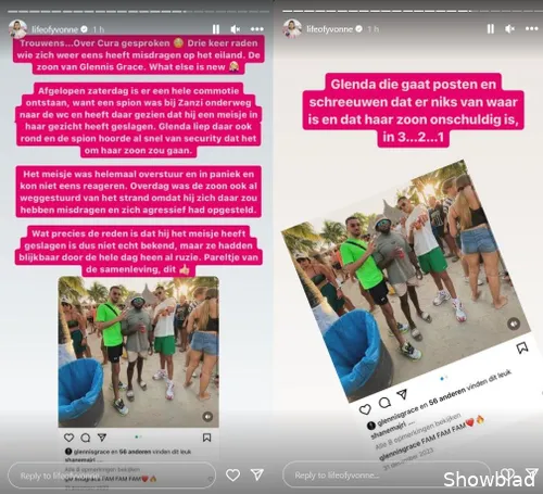 De zoon van Glennis Grace schijnt zich behoorlijk te hebben misdragen op Curaçao. Volgens spionnen van Yvonne Coldeweijer is er afgelopen zaterdag commotie ontstaan nadat Anthony Shane Majri een meisje in haar gezicht zou hebben geslagen. En er is meer. Zoon Glennis Grace