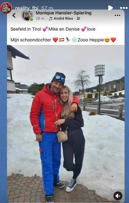 Vandaag is duidelijk geworden dat Mike en Denise een relatie hebben. Wie anders dan Monique onthult dat op Facebook, waar ze een leuke foto van de twee tortelduifjes heeft geplaatst en Denise officieel de schoondochter noemt.