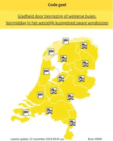 Het hele land, gaat momenteel gebukt onder code geel. Wegen zijn speklad en in het oosten valt momenteel aardig wat sneeuw.
