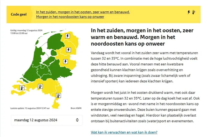 Het KNMI heeft code geel uitgevaardigd vanwege de hitte.