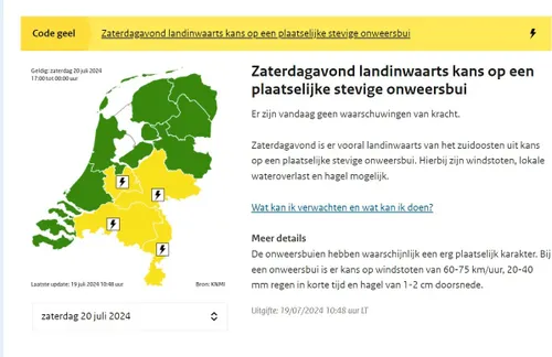 Code geel gaat in van zaterdagmiddag 17.00 uur en loopt af op 00.00 uur.