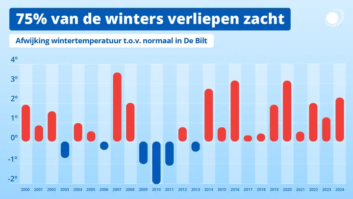 Het weerstation stelt dat klimaatverandering ervoor zorgt dat we anno 2024 vaker met de zuidwestenwind te maken krijgen, welke zachte lucht aanvoert.