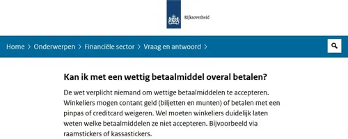 Het is een wettig betaalmiddag, maar volgens de Rijksoverheid mogen winkeliers zelf bepalen hoe er betaald wordt. En daar kan een klant niets tegen doen.
